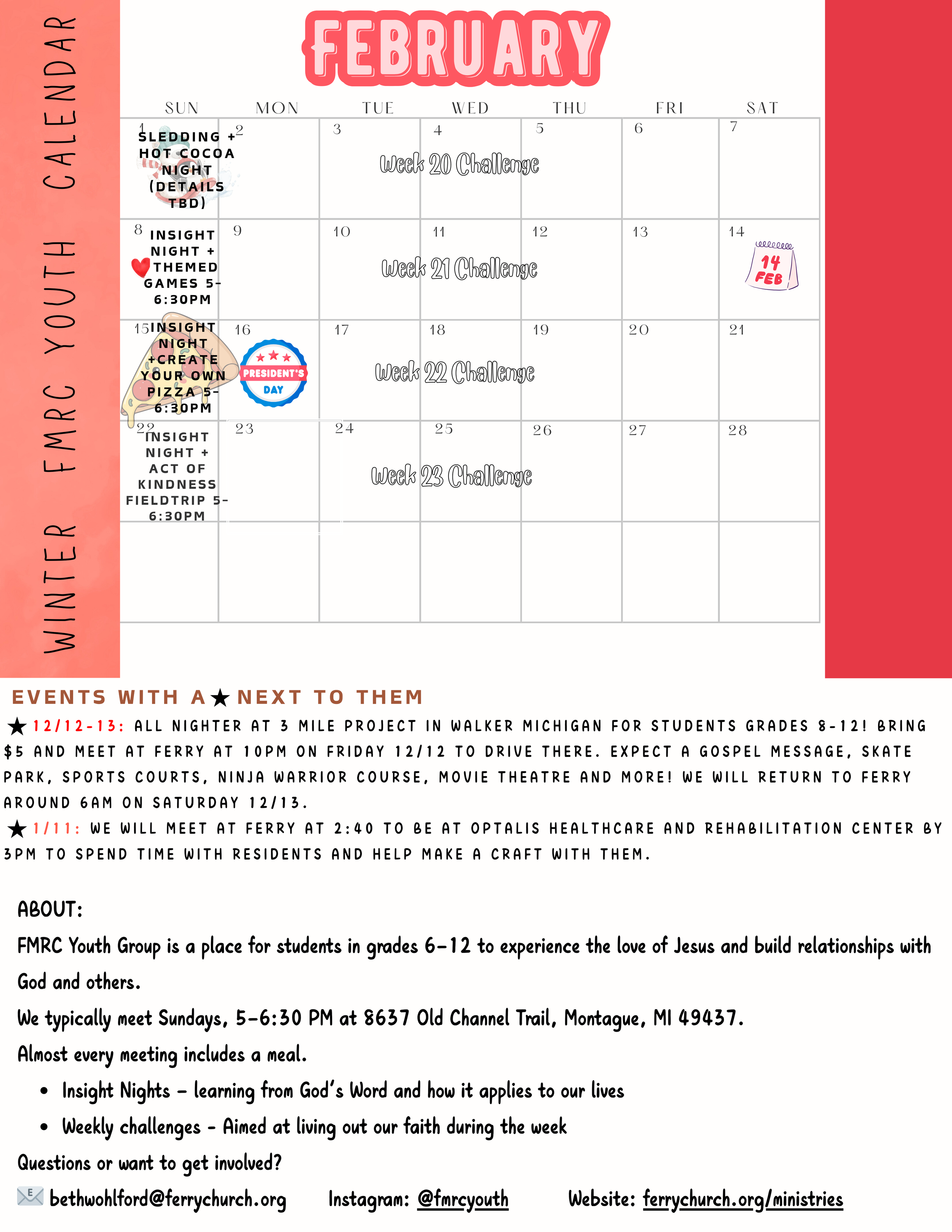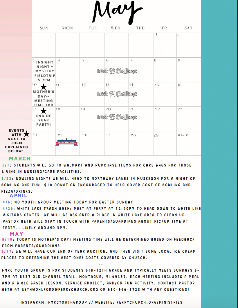 Whether you’re a parent or a student, you can reach out to Pastor Beth anytime with questions or to get connected: bethwohlford@ferrychurch.org