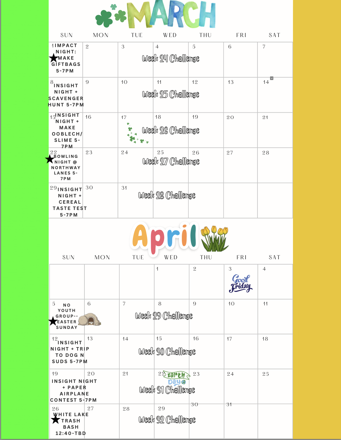 Throughout the year, we also serve together in the community and enjoy special outings—like trips to Lewis Farms, DEFY trampoline park, and more. See the current calendar below for details.